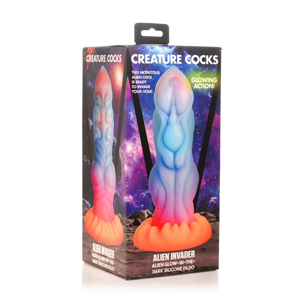 Deze Alien Indringer Glow Dildo tilt erotisch spel naar een nieuwe dimensie. De gelaagde kleuren, pulserende glans en glow-in-the-dark afwerking zorgen voor een zinderende extraterrestrial vibe die zelfs in het donker tot leven komt. De puntige top glijdt soepel naar binnen en de indrukwekkende reeks bulten, richels en ribbelstructuren prikkelt elke gevoelige plek met een sensatie die bijna buitenaards aanvoelt.