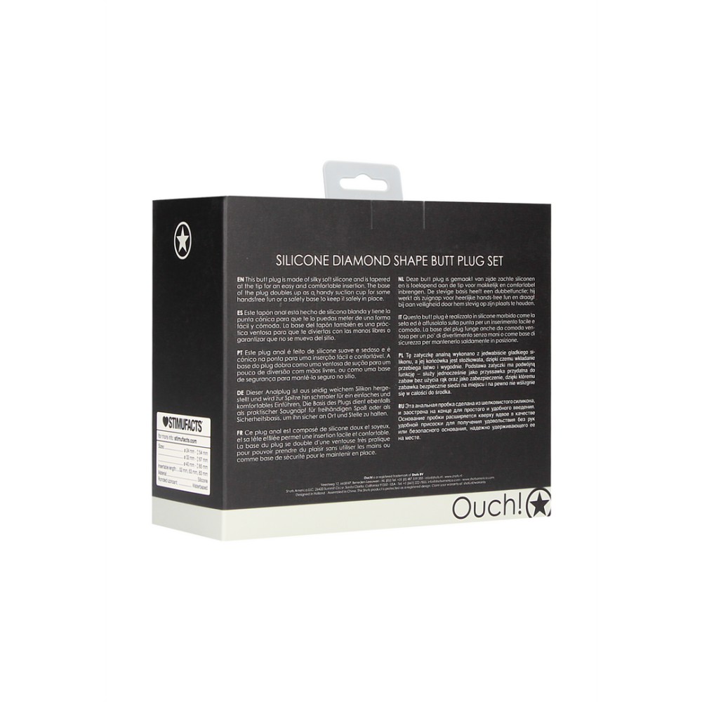 De diamantvormige buttplug set biedt elegante stimulatie met een luxe uitstraling. De plugs zijn gemaakt van zijdezacht silicone. Daardoor voelen ze soepel en comfortabel aan tijdens het inbrengen. Bovendien is de tip taps toelopend, zodat je altijd ontspannen kunt starten.