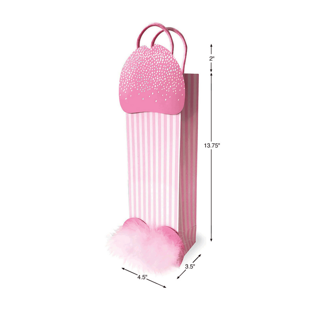 Breng humor, charme en een vleugje ondeugende elegantie in elk moment met de penis cadeauzak. Deze opvallende giftbag maakt van ieder cadeau een directe conversation starter. De glinsterende pailletten zorgen voor een feestelijke uitstraling, terwijl de zachte maraboeveren onderaan een speelse, luxueuze twist geven. Perfect voor wie iets wil geven dat niet alleen leuk is om te krijgen, maar ook om te overhandigen.
